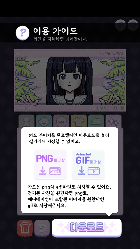 2.简单易上手的装扮玩法,搭配十分精美华丽的像素风格,还能自由保存图片。