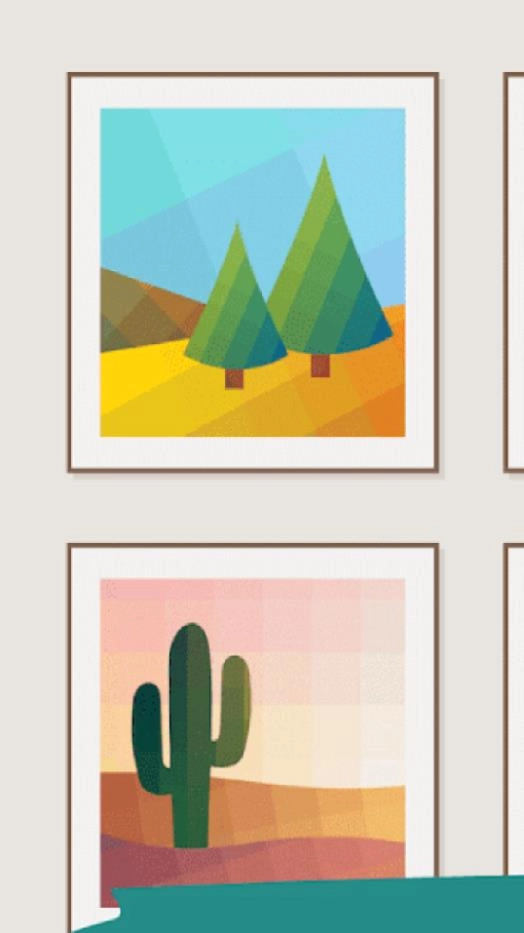 1.借助数千幅精美的像素风格现代艺术画,开展棕榈艺术画创作与着色游戏;