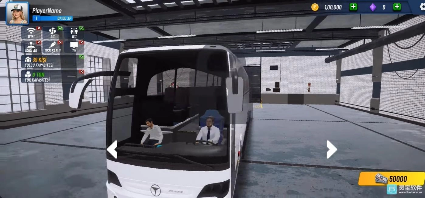 2、在首页左下方能够进入车库系统,在这里你不仅可以自由调整巴士的外观样式,还能使用金币解锁更多不同型号的车辆。