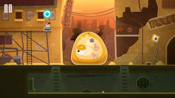 8、再次攀爬上史莱姆的躯体,旋动消防管道的阀门,以此冲击史莱姆的身体。
