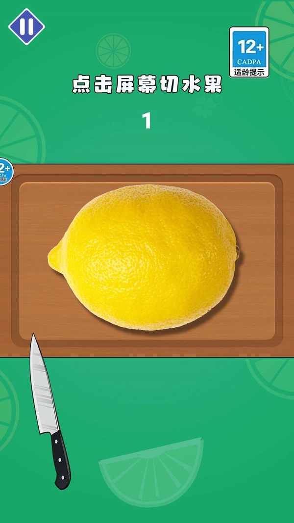 1、玩家需通过触摸屏幕操控刀具,对屏幕上的柠檬进行切割。