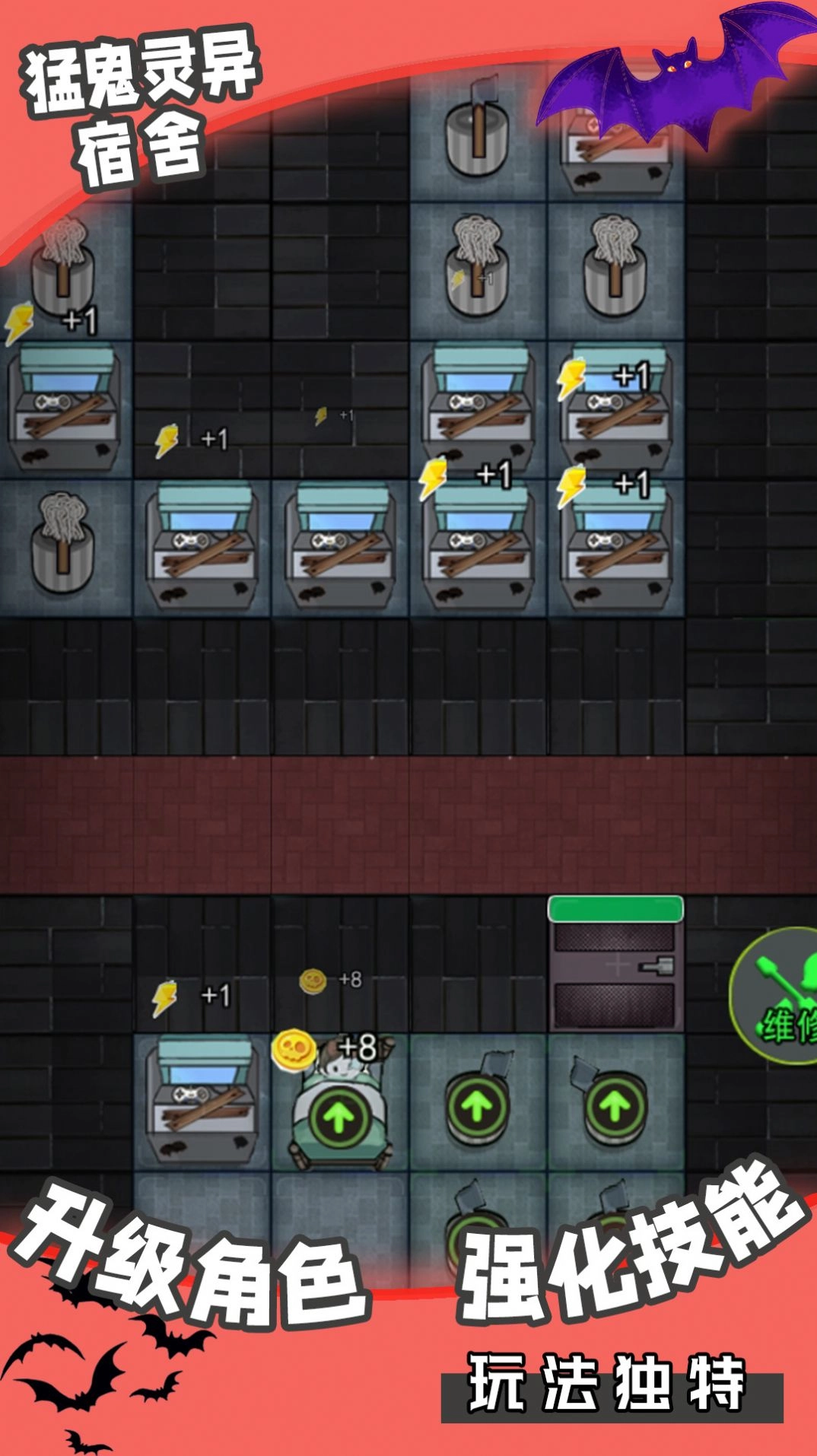 2、趣味十足的塔防模式与独特玩法,为玩家开启别具一格的宿舍冒险之旅;