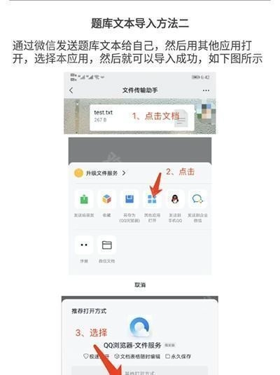 5、通过微信发送题库给自己,然后点用其他应用打开选择本应用即可。