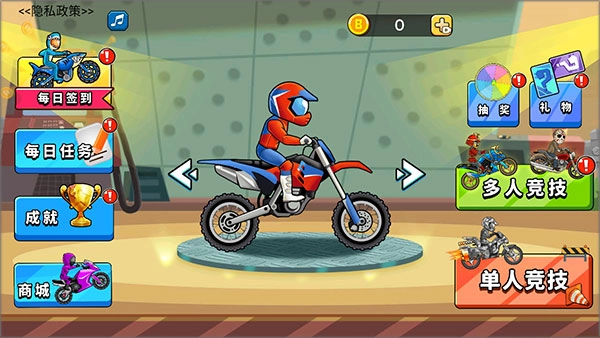 1、安装好登山极限摩托狂飙,进入游戏选择单人竞技或者多人竞技。