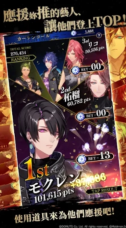 在“starless”中展开的故事,会根据游戏内活动的结果、角色排名等因素发生很大变化。那些关于男人们的羁绊、对立与纠葛的戏剧性且充满未知的情节走向,都将由你的支持来决定。