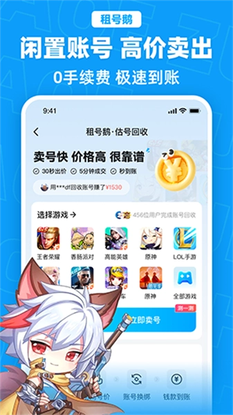 3、闲置的账号可以进行出租,没有任何的手续费