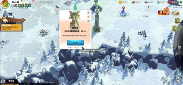 在我们探索迷雾的过程中,斥候完成12小时的驻扎探索后务必开启。地图上的边边角角不必全部探索完毕,每个地区都设有一座遥望塔,只要我们将该区域的迷雾探索进度推进到90%以上,点击遥望塔,剩余未探索的迷雾就会被全部清除。