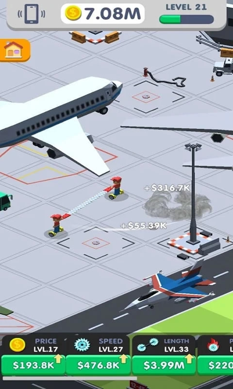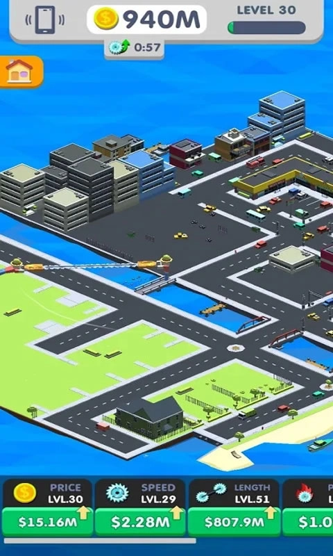 《损坏城市CrushCityIdle》是一款闲置休闲游戏。在游戏里,你需要操控一对拉着长锯的工人,点击屏幕就能让他们交换固定点并做匀速圆周运动。游戏设定中,这把长锯几乎无所不割,无论是树木、房屋、车辆,甚至是飞机等,都能用它来破坏。破坏不同物品会获得不同的奖金,这些奖金还能用来提升长锯的各项能力。总的来说,这是一款非常解压的游戏,一锯下去万物皆断的快感,绝对值得你体验。