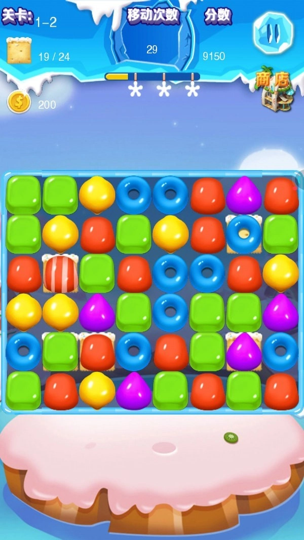 2、把相同的果冻连起来消除吧,要是你肯动动脑筋,就能用最少的步数消除更多方块。