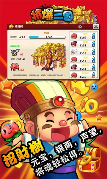 将爆三国,将爆三国是一款国产热门的趣味角色扮演游戏,将爆三国这款高画质游戏采用了顶尖游戏引擎技术研发制作,刺激的军事战斗,人物造型q萌可爱,各种三国武将,游戏采用回合制的玩法,游戏全力打造美丽的中国场景,强大的角色系统和角色设计,游戏将中国风更卡通元素结合起来,炫酷的武将技能,中国风与卡通风格相结合,游戏画面还原三国战场实景。更多好玩的模式技巧等你来探索。