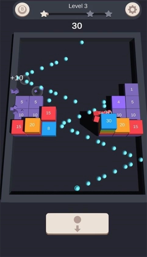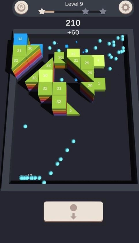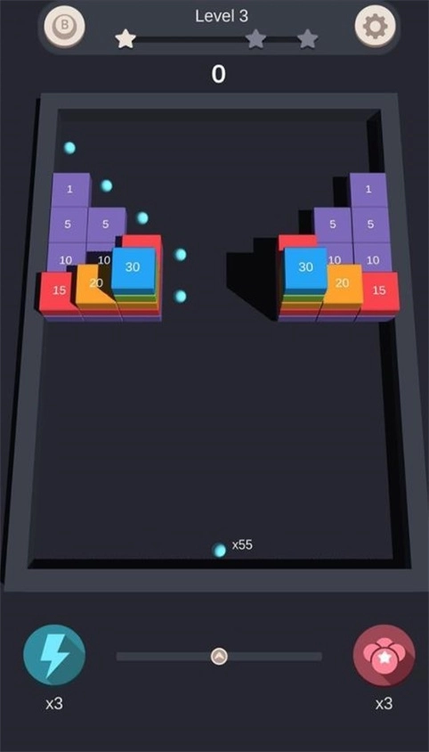 3.巧妙地瞄准并射击球打破所有的丰富多彩的区块。