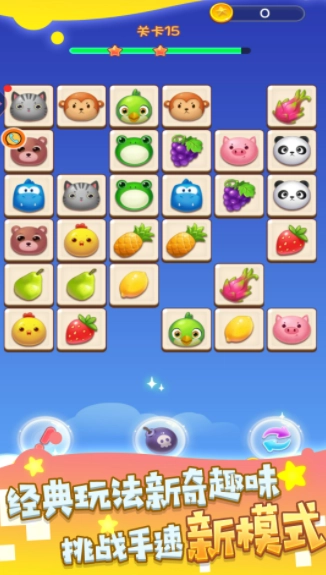 1、这是一款经典的连连看游戏,你的目标是找出相同的图案,通过连线把它们消除。