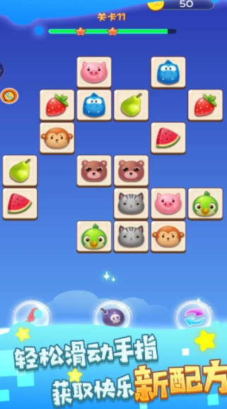 1、卡通背景音乐萦绕,连连看闯关欢乐诙谐!