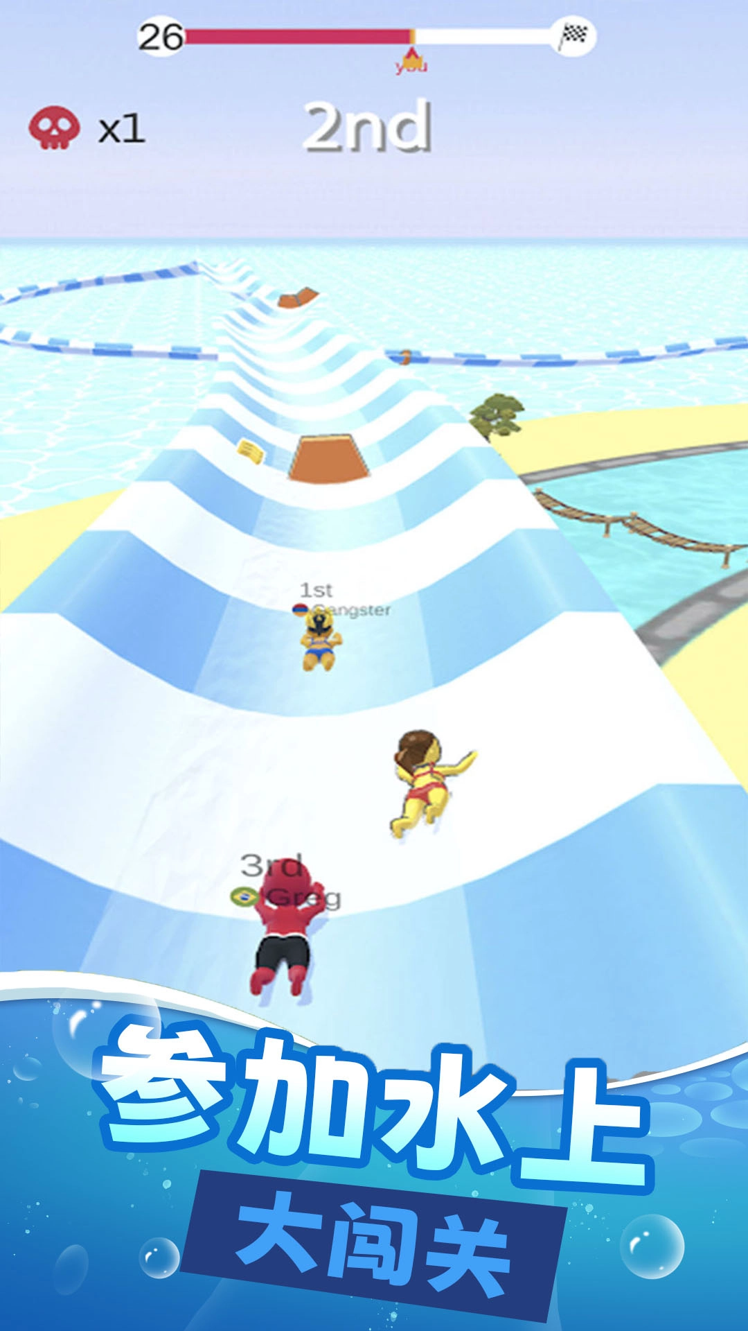 一款非常好玩的冒险游戏,有很多精彩的内容,你可以随意体验,随意展示你独特的微操作技巧。完成所有任务后,可以获得自己喜欢的奖励。日常玩法精彩无限,置身其中的幸福感会让大众感到难以忘怀。你可以在一场激情的划水之旅中与其他强大的玩家一决高下!允许玩家进入水上公园进行各种水上运动的休闲游戏。这个水上公园建有许多不同的滑道。玩家需要控制小人在滑道上的平衡,让小人保持高速前进,获得更好的排名结果。