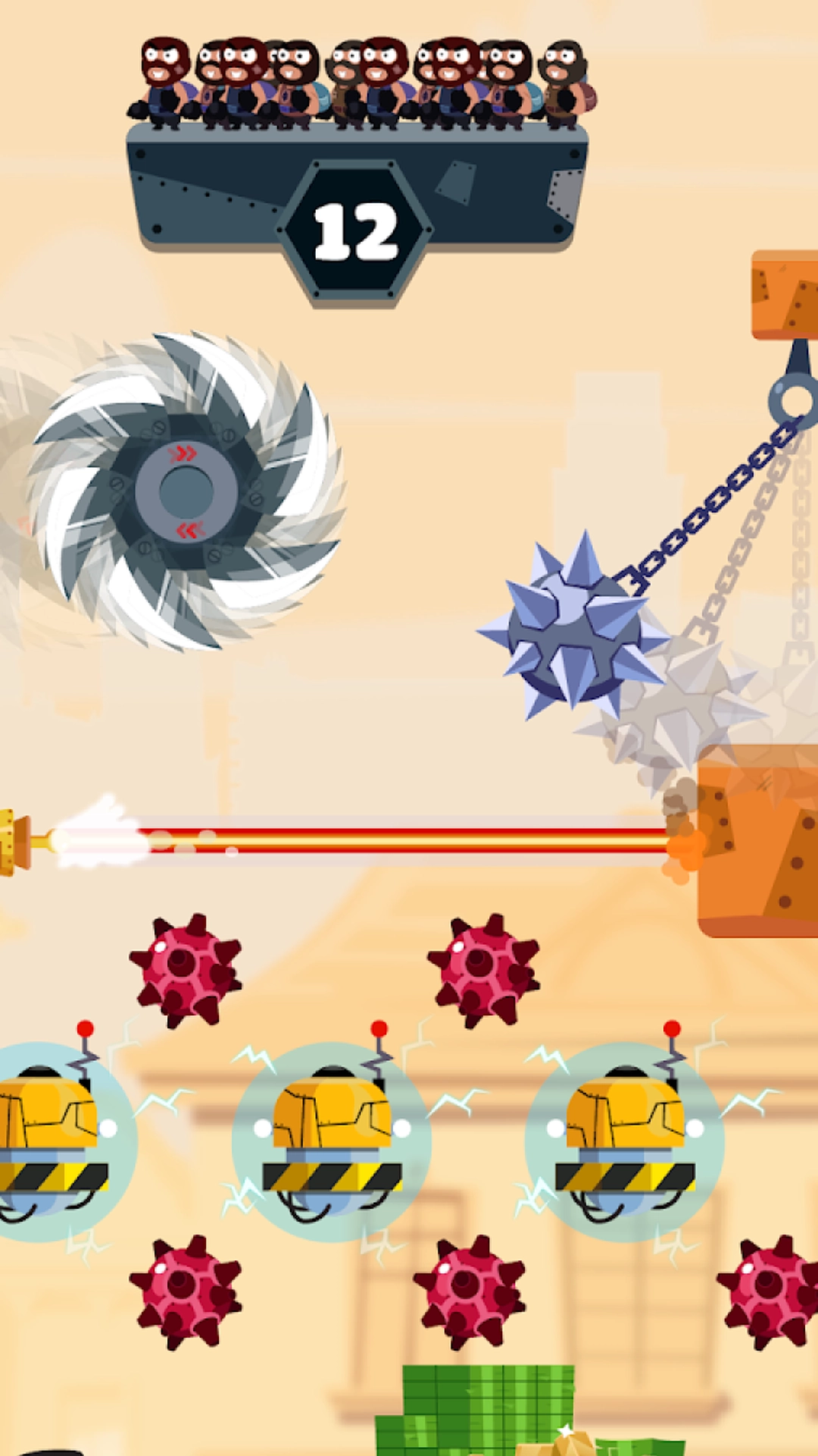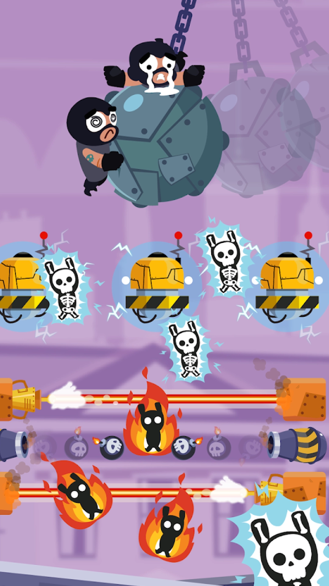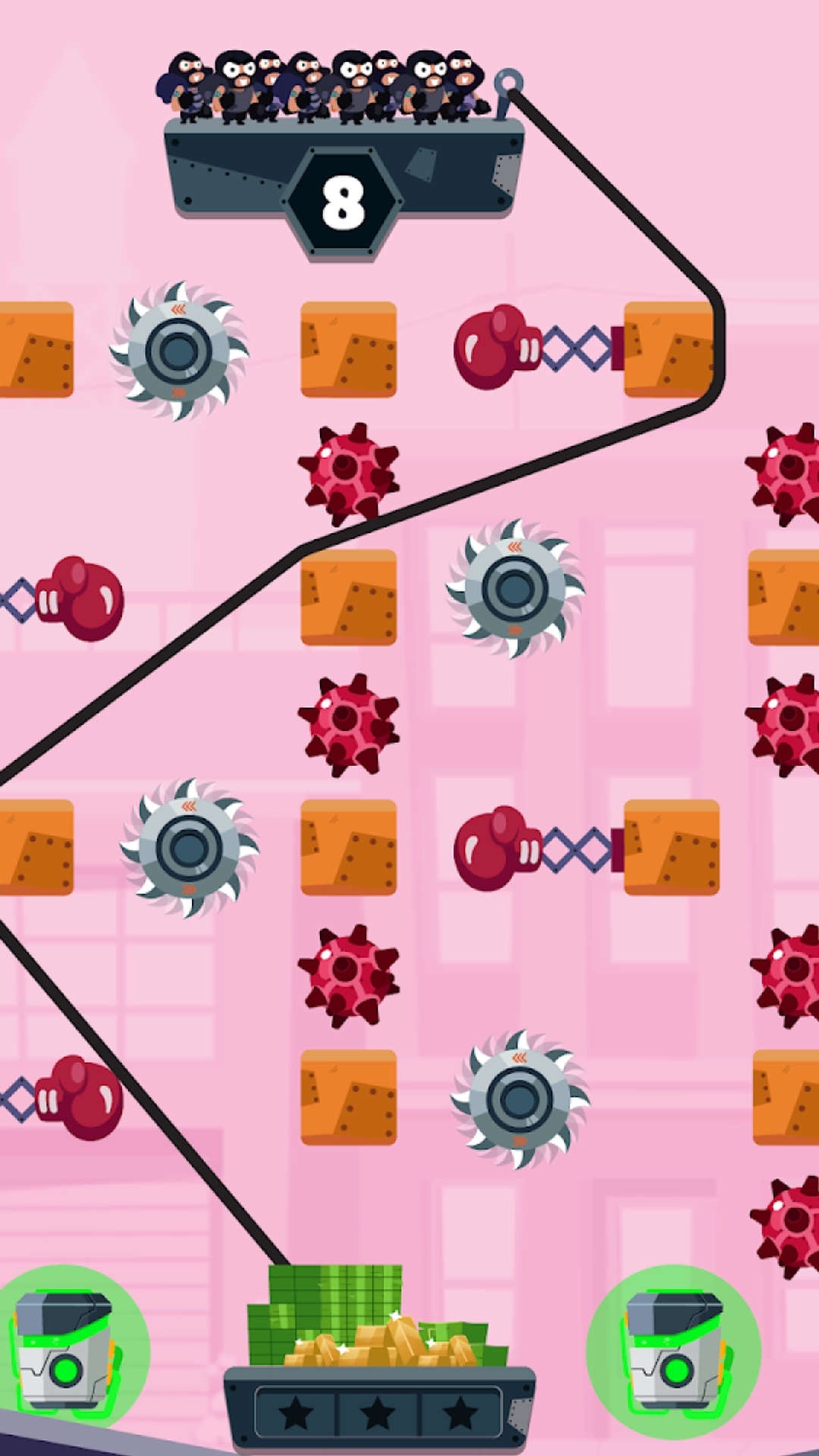 强盗飞行游戏是一款测试玩家的手速和智力的游戏。这里的主角是被困的匪徒。它们都是宝藏,但陷入了困境。任务是营救他们。这不是一件容易的事。您需要无数种机制。否则,等待您的内容将失败。新的游戏方式可供所有人体验。体验丰富有趣的破关游戏的乐趣,并帮助愚蠢的强盗成功逃脱致命陷阱。轻松有趣的关卡打破常规。