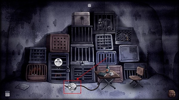 5、接着切换至放大镜视角,回到外部环境,点击灯光装置,借助铁管将灯敲灭,灯熄灭后,看守者便会离开。