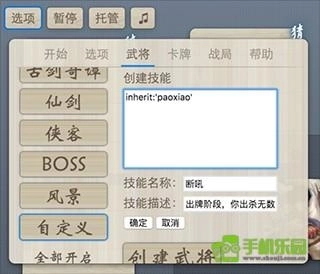 test:曹操;test:奸雄,在游戏里会显示成曹操和奸雄,不过不会和其他叫曹操的DIY产生冲突。