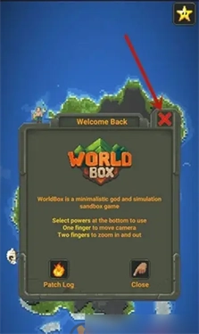 1、关闭欢迎页面:进入游戏后,在欢迎页面,点击×,关闭欢迎页面。