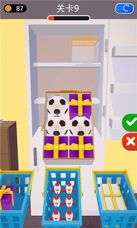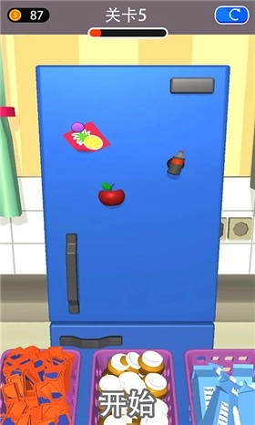2.持续挑战关卡还能解锁全新物品,玩家必须将冰箱填满方可顺利通关。