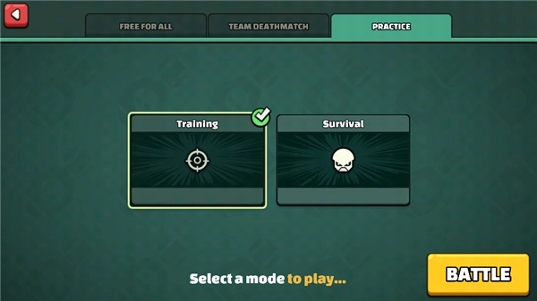 1、进入游戏首页,开启加速器,然后在新手教程中点击自己想要玩的游戏模式,点击battle;