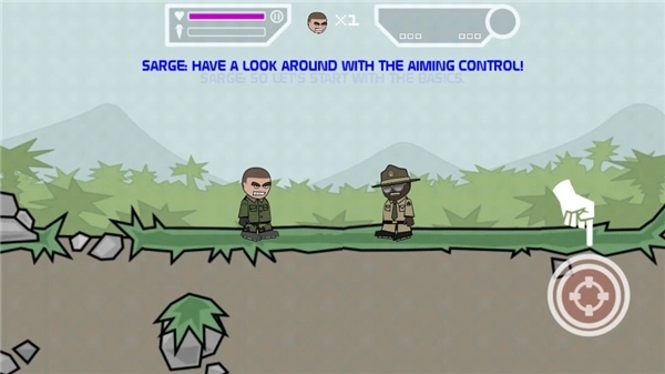 2、点击左边的瞄准按钮,玩家可以控制角色的枪支射击方向,长按即可射击;