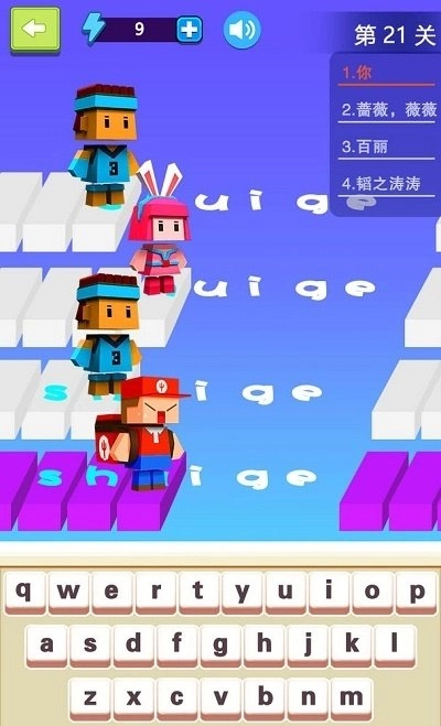 艺术场景描绘给您最独特的视觉体验。独特的风格让玩家体验到不同的游戏乐趣。声音效果优美使人感觉像在现场通过输入拼音来写单词。