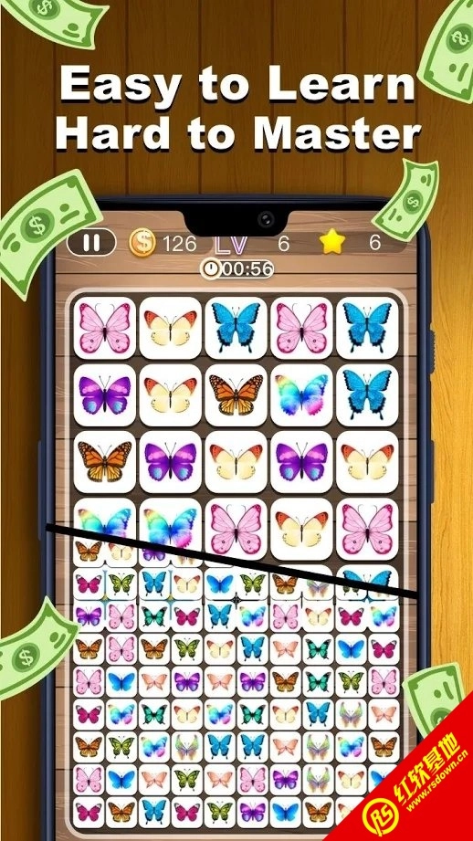 1.乱七八糟的东西散落在地上。找到两个相同的项目并将其匹配以轻松消除。重复循环。