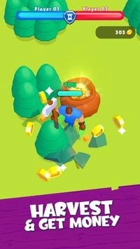 2、在这个独特而简化的战斗游戏中,你必须收割树木才能获得硬币。