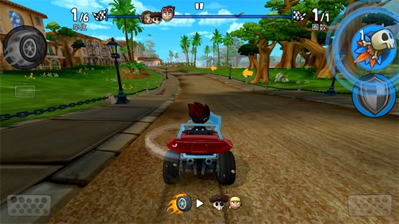 4、巧妙运用道具阻挡对手的前进,在超越所有对手后第一个冲过终点线,就能获得胜利。