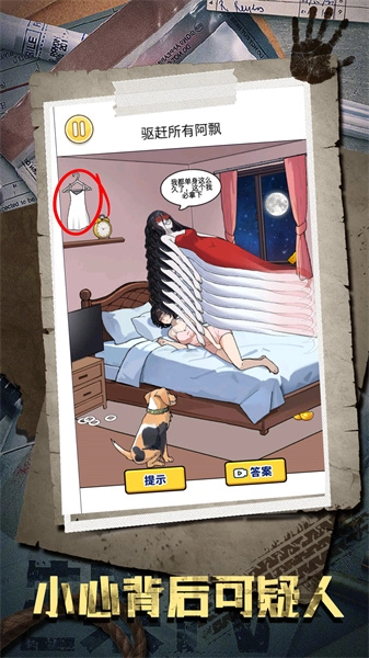 小心背后可疑人手机版,这是款剧情丰富精彩的冒险闯关游戏,游戏中超级多谜底都等你来解答,游戏操作不难的哈,就看玩家们怎么玩了,玩家们可要好好认真去玩这款游戏,要不然很容易炸裂直接闯关失败。