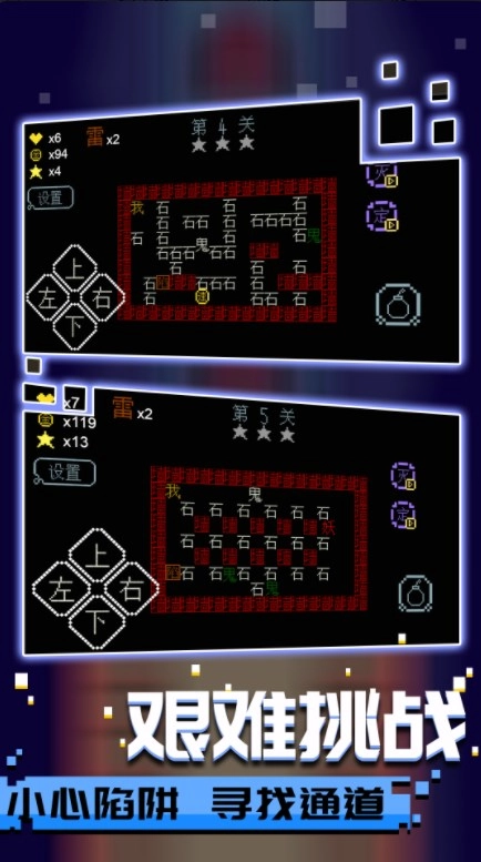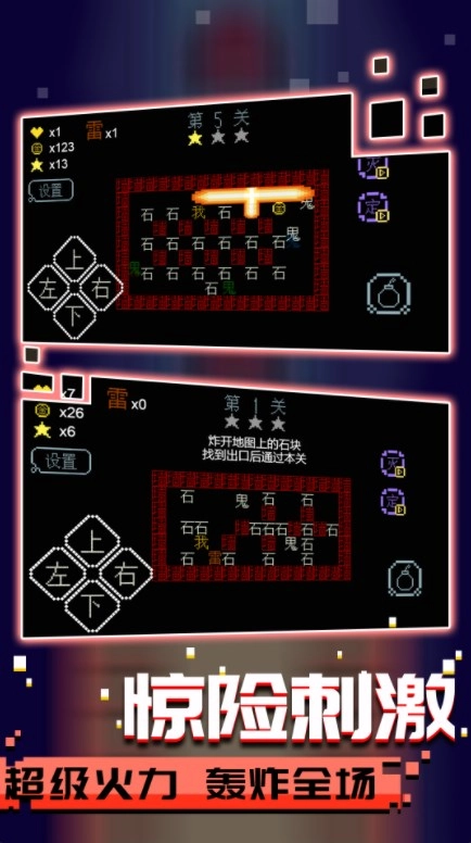 3、游戏设置多重关卡,每一关都会有不同程度的雷埋在游戏内。