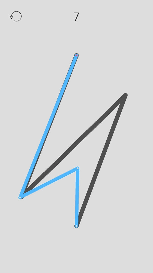 这是一款脑力解谜闯关游戏。你需要用一条直线摆出指定的图形,通过添加节点来改变其形状。添加节点的次数有限,得仔细思考,不然就得重新开始。随着关卡推进,要求的图案会越来越复杂,发挥你的空间想象力,解开一个又一个谜题吧。