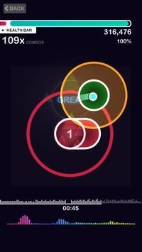 4、运用绚丽的色彩,搭配彩虹般的特效,设定简单的规则,跟着音乐的节奏点击你的屏幕。