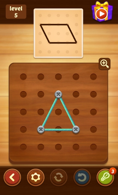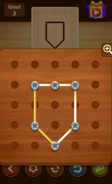 绳子艺术(LinePuzzle:StringArt)邀你来挑战!这是一款关卡丰富的益智闯关游戏,玩家需要借助绳子完成图形绘制。随着关卡推进,难度会逐渐提升——不仅图形变得更复杂,绳子的使用也会更受限,有时甚至要求用一根绳子完成绘制。这需要你花时间思考,要是遇到困难,还能使用提示道具来帮忙哦。