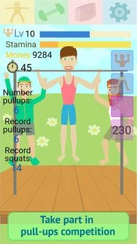在《肌肉点击器2》里轻松致富很简单,你只需通过举哑铃、踩健身自行车、做引体向上和深蹲这些运动,就能获得金钱奖励。