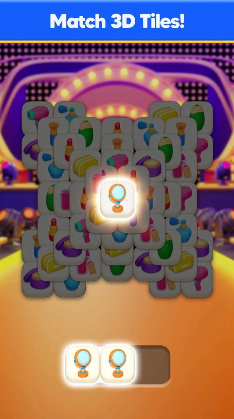 2、通过消除相同颜色的瓷砖来获取金币和道具,合理规划每一步消除效果。