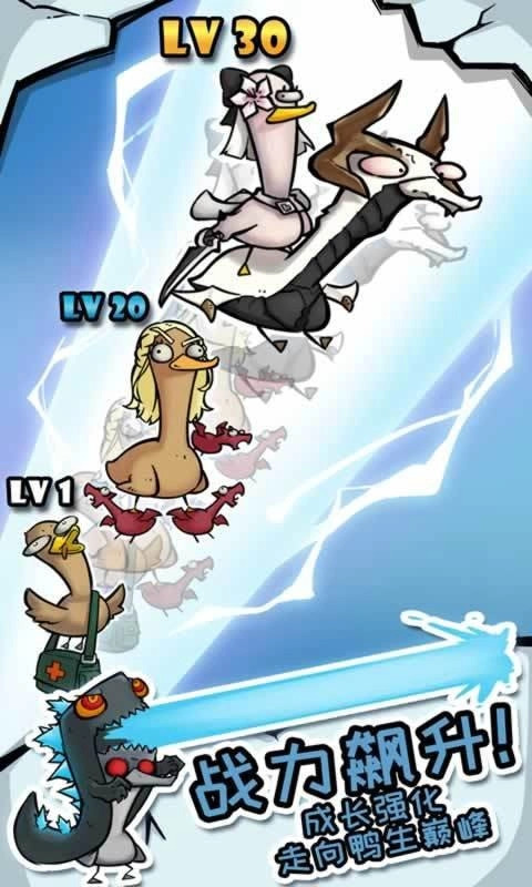 这里有各种不同的鸭子,它们都很令人兴奋,正等着你去解锁。而且,等级越高的鸭子,战斗力就越强,能获得的金币也会越多。