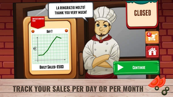 3、你赚取的收入能够助力你研发新的比萨品类,解锁更多不同种类的比萨。