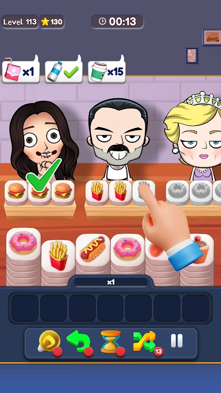 2、玩家需要通过匹配消除各类美食,达成一系列具有挑战性的关卡目标;