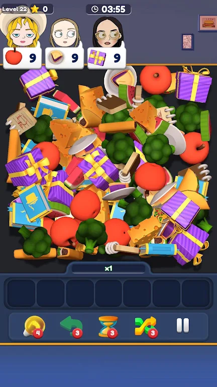 食物多重配对是一款兼具趣味性与挑战性的三消匹配消除闯关游戏。玩家将踏入美食的奇妙世界,通过匹配相同的食物来消除它们,以此获取高分并达成关卡目标。游戏中设置了多重配对的特色玩法,玩家需要在规定的步数内完成多个配对任务,以此考验自身的匹配技巧与策略思维。玩家还可以尝试不同的组合方式,借助道具和特殊食物来增强配对效果,从而提升游戏体验与乐趣。