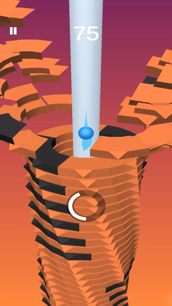 用球跳,摧毁堆栈并通过螺旋线。要销毁堆栈,只需轻触屏幕即可。只需点按屏幕即可到达关卡的末尾。但要小心-球不能穿过黑暗的堆叠。你可以试试,我们知道我们在说什么:)但是如果你加快速度,那么即使是黑暗的堆叠也不会干扰,并且球将能够克服它们。认为一切都很简单?当你达到至少20级时说出来!游戏有各种各样的球,你可以免费获得,达到一定水平或获得点数。不喜欢打球吗?选择立方体,硬币,马或任何其他皮肤。你找到了想要打球的球吗?在审核中留下您的意愿,我们将添加它。