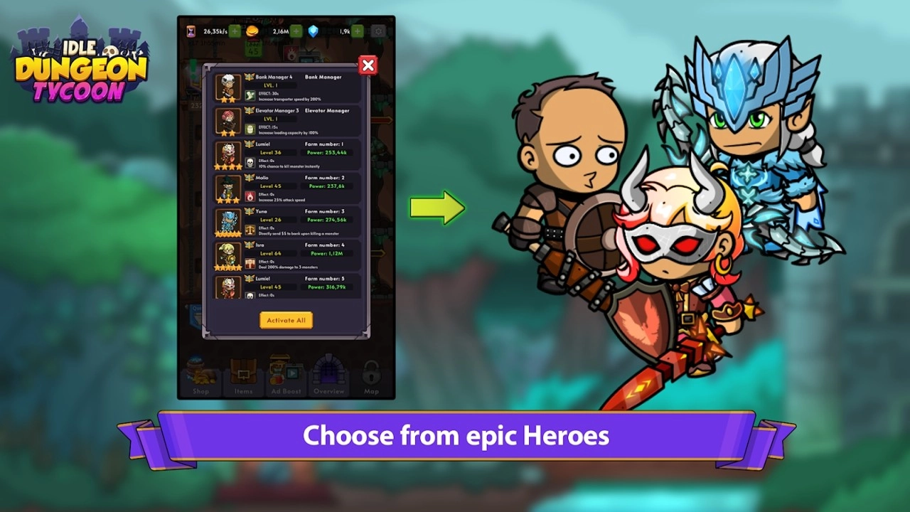 3、英雄卡牌设计丰富多样,可组合不同挑战阵营,深入探索神秘地下城宝藏,赢取海量奖励。