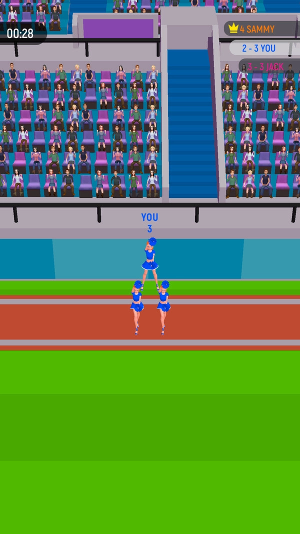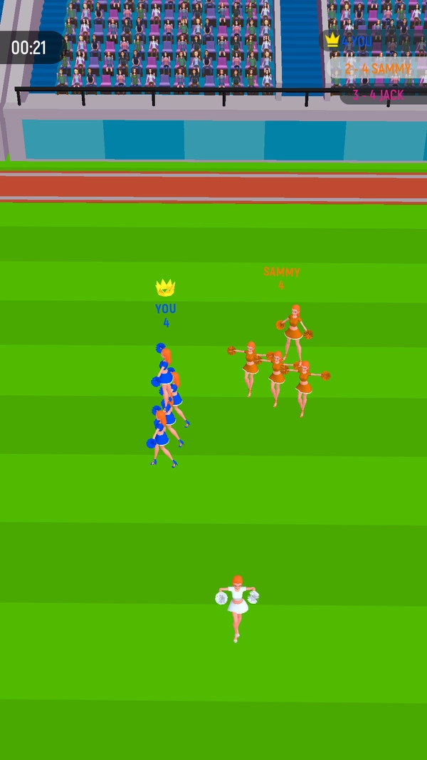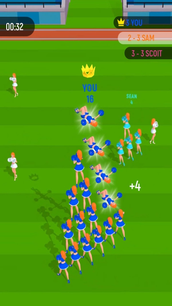 啦啦队大作战游戏中带领你的队伍来参与竞赛,在赛场上利用技巧来击败其他的队伍,获得最后的胜利来赢得更多的奖励,魔性的画面为你带来更多的趣味的挑战,小心操控啦啦队员做出各种特技保持平衡,还可以购买道具来帮助你,享受丰富闯关的挑战乐趣,赢得更多的成就。