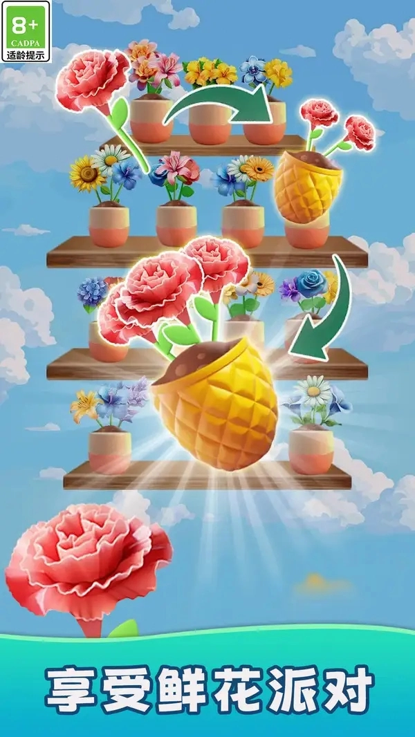 【鲜花收纳】是一款鲜花收纳的小游戏,将品种相同的鲜花组合在一起就可以完成消除挑战,指尖点击就可以轻松的操控,游戏没有任何的难度,小清新的游戏画风,关卡的难度会升级的哦!还有一些不同的主题可以解锁,游戏的玩法和模式很丰富的哦~有喜欢的小伙伴就来吧~