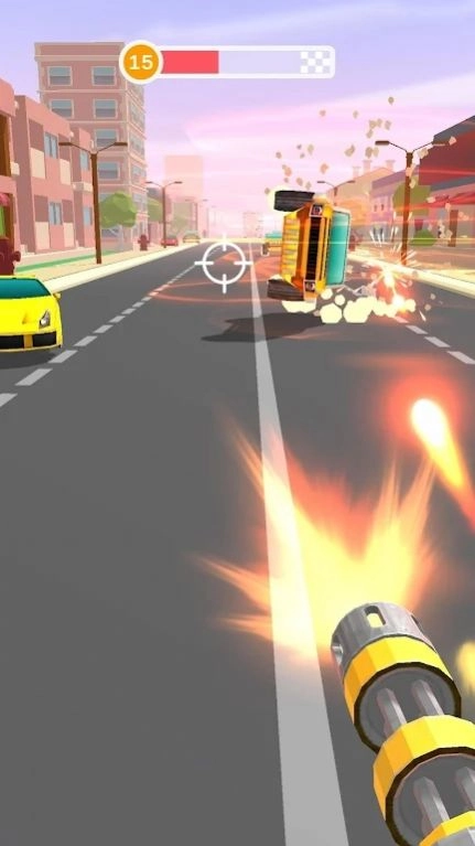 在这个游戏中,玩家可以用一个巨大的加特林在路上扫车。