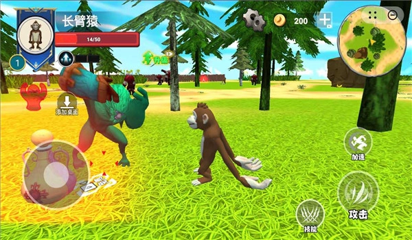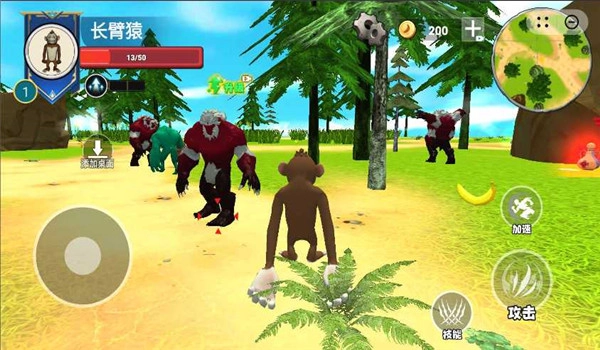 2.通过探索、采集、狩猎等活动积累经验,解锁更高级的猿猴形态,呈现从普通猿猴到智能生物的进化历程。