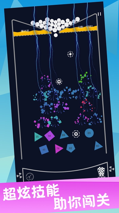 3、玩家可以利用球的角度、射弹的数量来合成,来清除更多的砖块。