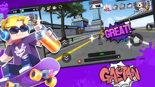 派对小街中文版是一款全新趣味的滑板模拟竞技类手机游戏,独特创意的街头文化,自由轻松的放置点击操作,以最佳的模拟操作去完成各种滑板任务的挑战,和小伙伴一起加入游戏,不断的去冲刺探险,解锁更多的游戏趣味和奖励,让你可以更好的去投入游戏,开启无比真实和自由的极限运动!多样的涂鸦收集涂鸦徽章,喷出超酷的图案,除了滑板挑战,游戏还提供舞蹈挑战,展示你的舞蹈天赋和节奏。