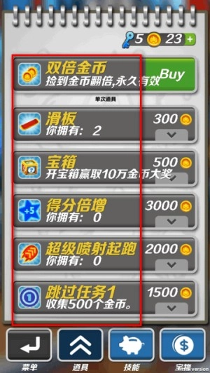 2、在商城里我们能买到得分增幅道具,使用后得分会得到提升。