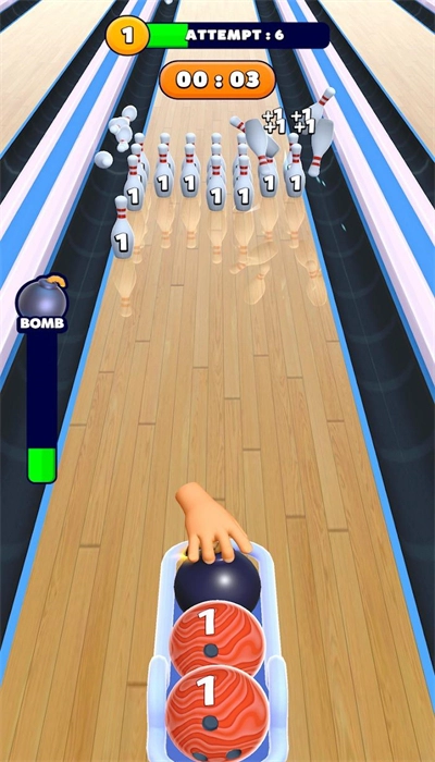 2、丰富多样的球道场景可供体验,还有不同款式的保龄球等待解锁,整个过程充满了挑战性。